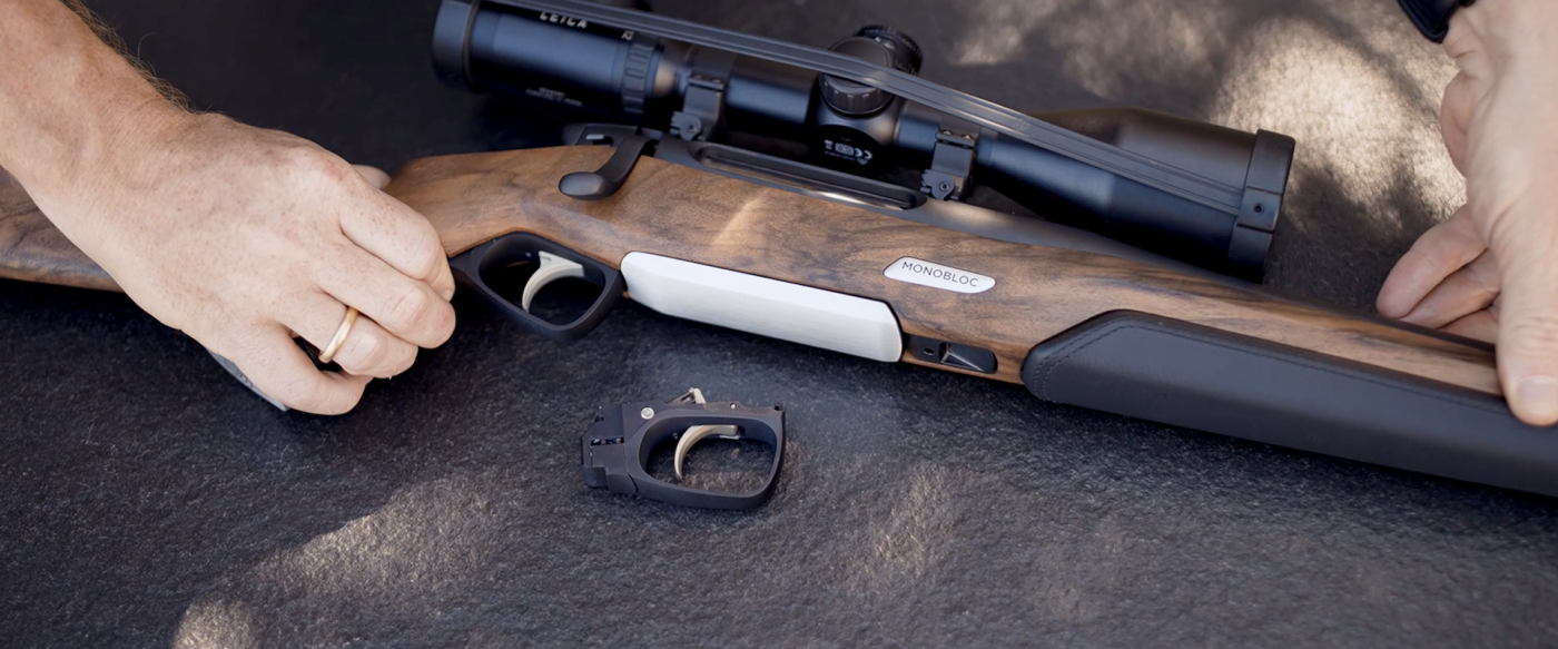 A one-of-a-kind premium hunting rifle with unified barrel and housing for ultimate accuracy, all-steel construction for toughness, and custom configuration options.